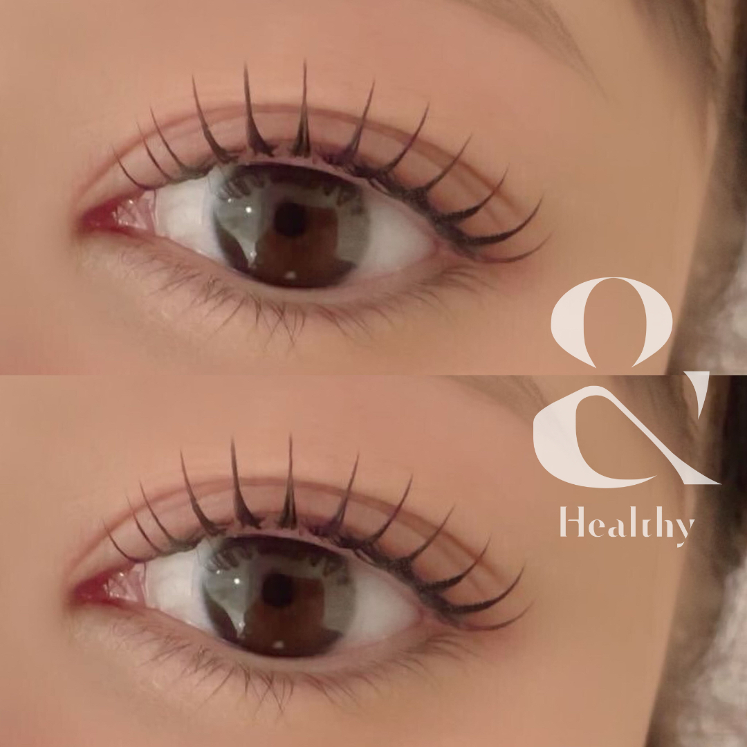 A.アンドヘルシーはマツエクとマツパの良いとこどりの技術です◎マツエクごとまつげをぐっとあげるので、自まつげとマツエクの一体感がでます!また、マツエクがとれてきても、カール(パーマ)が残るので、デザインの変化を長く、楽しむことができる点も人気の理由のひとつです◎